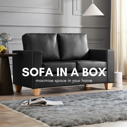 Enderby Faux Leather 2 Seater Sofa in a Box, Brown Faux Leather