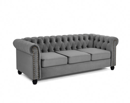 Chesterfield Velvet Fabric 3 Seater Sofa, Black Velvet