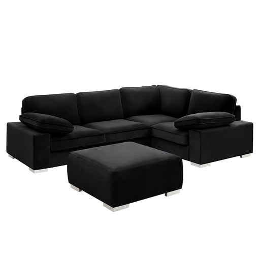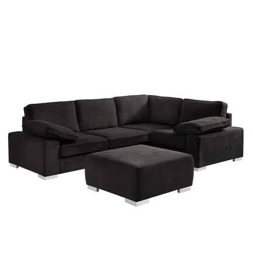 Birkdale Right-Hand Facing Corner Sofa With Footstool, Black Velvet
