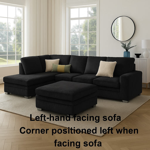 Marlow Large U-Shaped Sofa With Footstool, Black Jumbo Cord