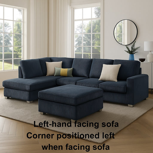 Alcott Left-Hand Corner Sofa With Footstool, Dark Blue Jumbo Cord