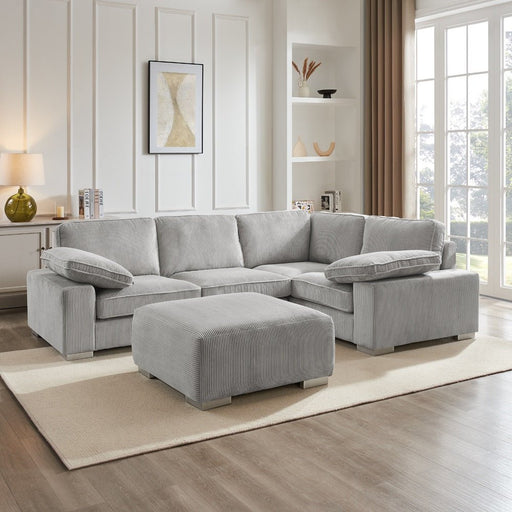 Tristan Left-Hand Corner Sofa with Footstool, Grey Chenille
