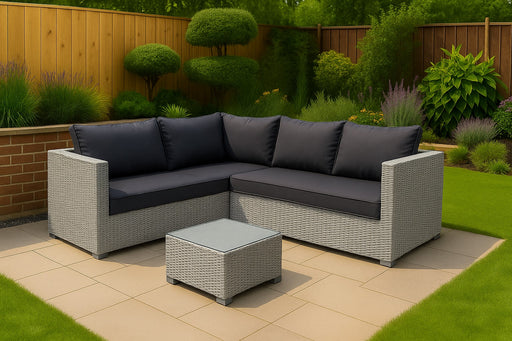 Erica Rattan Wicker Garden Corner Sofa Set, Grey