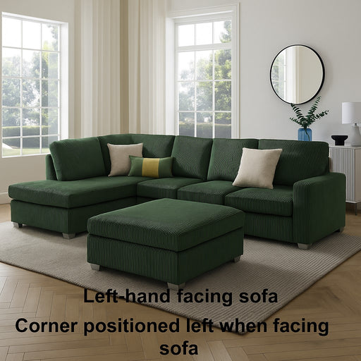 Alcott Left-Hand Corner Sofa With Footstool, Green Jumbo Cord