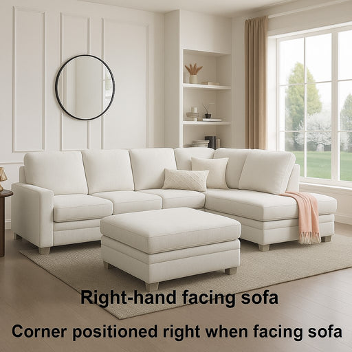 Alcott Right-Hand Corner Sofa With Footstool, Cream Linen