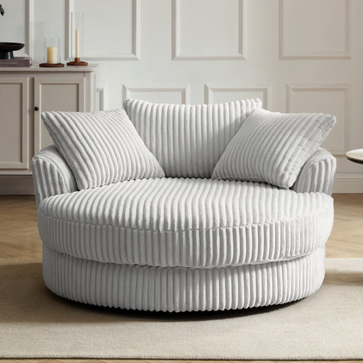 Skyler Swivel Loveseat, Silver Teddy Jumbo Cord