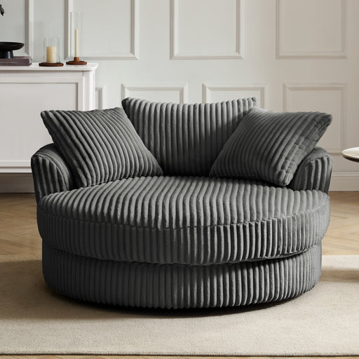 Skyler Swivel Loveseat, Dark Grey Teddy Jumbo Cord