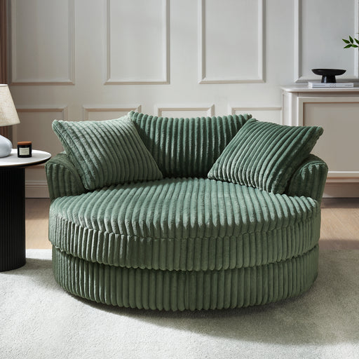 Skyler Swivel Loveseat, Green Teddy Jumbo Cord
