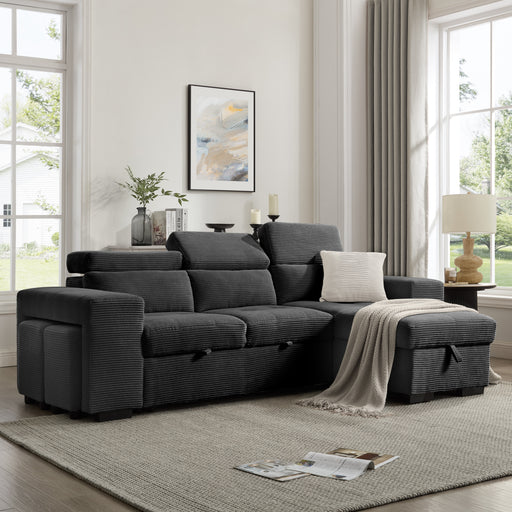 Harriet Pull-Out Sofa Bed With Reversible Storage Chaise, Charcoal Linen