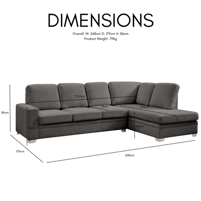 Transform your living space with this contemporary sofa, designed to bring both comfort and style into your home. Upholstered in soft, grey textured linen, this sofa offers a warm and inviting feel while still being durable enough for everyday use. Seating up to 5 people with the chaise section on the right-hand side (when facing the sofa).