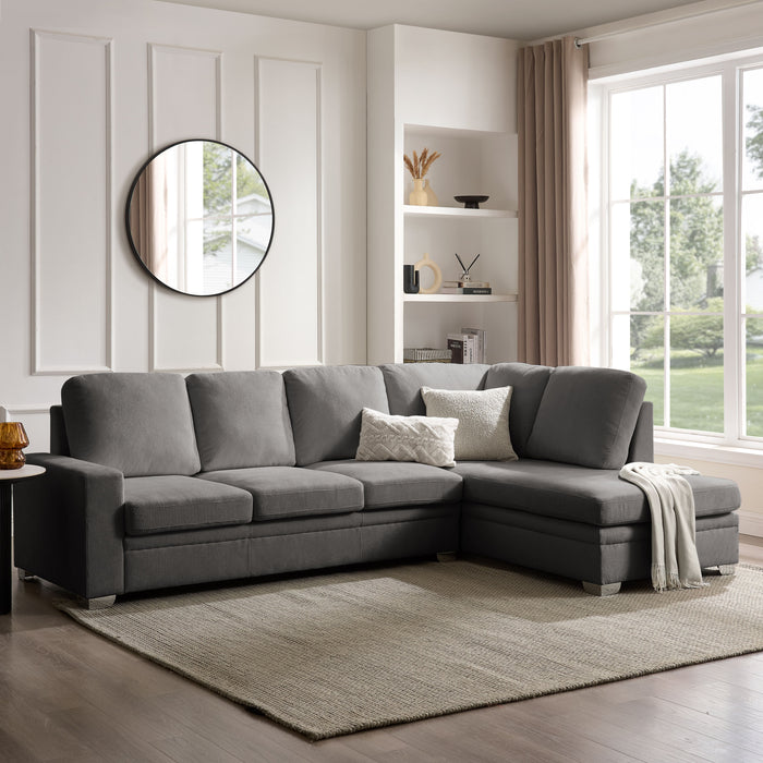 With its spacious right-hand facing, L-shaped design, there’s plenty of room for family movie nights, lounging with friends, or stretching out solo after a long day. The supportive cushions and wide armrests make it a perfect spot to relax, while the neutral tone effortlessly complements a variety of décor styles.