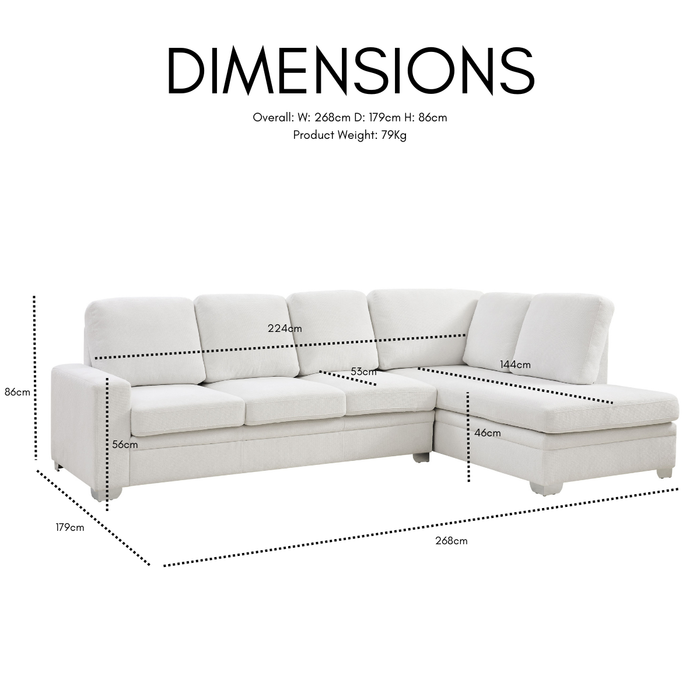 With its spacious right-hand facing, L-shaped design, there’s plenty of room for family movie nights, lounging with friends, or stretching out solo after a long day. The supportive cushions and wide armrests make it a perfect spot to relax, while the neutral tone effortlessly complements a variety of décor styles.