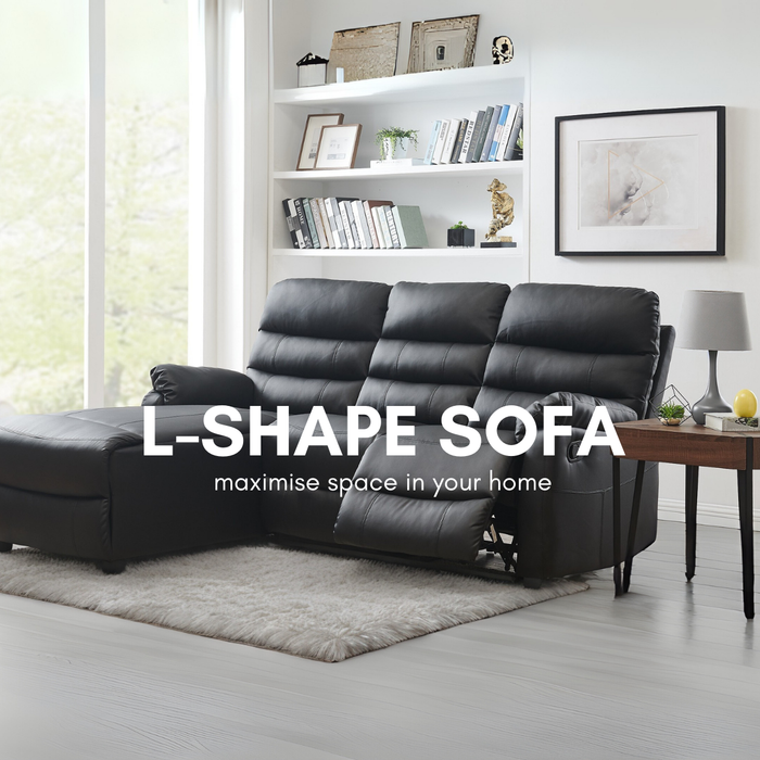 This spacious left-hand facing, L-shaped design sofa is perfect for stretching out and relaxing, while the built-in manual recliner section lets you lean back and put your feet up at the end of a long day. Plush, pillow-top armrests and generously padded cushions provide cosy support for movie nights, naps or entertaining guests.