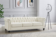 Add some elegance to your home with our gorgeous Chesterfield sofa! With its charming scroll-shaped arms and sophisticated tufted design, this sofa is sure to bring a touch of class to your home. We've handpicked beautiful velvet fabric colours we know you will love! Choose from our lovely shades of grey, blue, green, black, gold or cream to show off your unique style and personality.