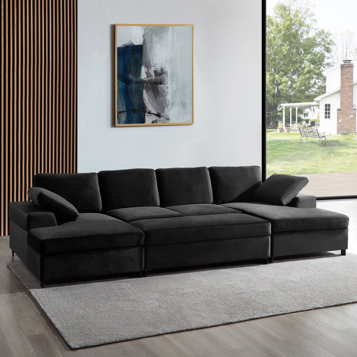 This set includes 1 x large U-shaped sofa and 1 x large storage footstool of the same fabric and colour option.