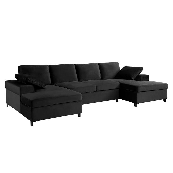 Sink into this spacious, low-slung sofa, with deep seats, low chunky armrests and additional throw pillows. Dartford is finished in either an elegant velvet fabric or stylish linen fabric. Dartford has oversized proportions so plenty of room for everyone to stretch out and relax! Trust me, this Dartford U-shaped sofa is the perfect centrepiece for your space!