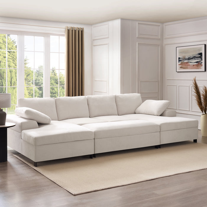 This set includes 1 x large U-shaped sofa and 1 x large storage footstool of the same fabric and colour option.