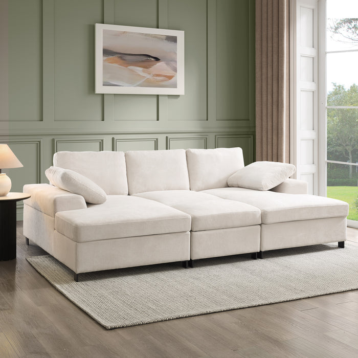 This set includes 1 x small U-shaped sofa and 1 x small storage footstool of the same fabric and colour option.