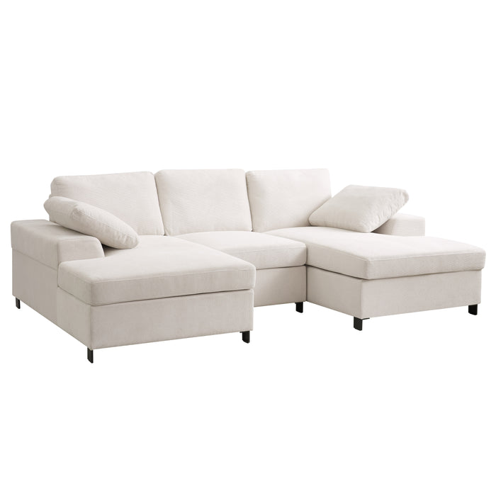 Sink into this spacious, low-slung sofa, with deep seats, low chunky armrests and additional throw pillows. Dartford is finished in either an elegant velvet fabric or stylish linen fabric. Dartford has oversized proportions so plenty of room for everyone to stretch out and relax! Trust me, this Dartford U-shaped sofa is the perfect centrepiece for your space!