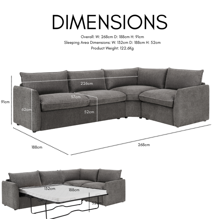 Get ready to be amazed by our modern Declan corner sofa with fold-out sofa bed. The Declan corner sofa will undoubtedly be the highlight of your home and will surely delight any visitors. Sink into the plush and luxurious cushions that make you feel like you are lounging on a fluffy cloud.