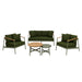 Unwind in luxury with the generously cushioned seats, designed for maximum comfort during long, leisurely afternoons. The set includes a 3-seater sofa, two single armchairs, and a dual-level coffee table featuring teak wood and matching powder-coated aluminium tops—ideal for hosting or simply enjoying a peaceful moment outdoors. The rich green cushions paired with warm teak accents make this garden lounge set a standout feature in any contemporary patio or terrace space.
