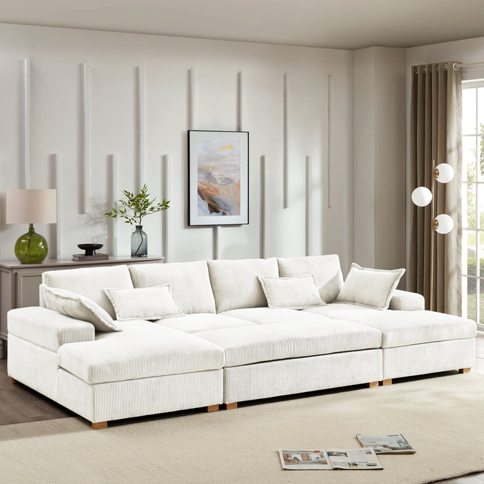 This set includes 1 x large U-shaped sofa and 1 x large footstool of the same fabric and colour option.