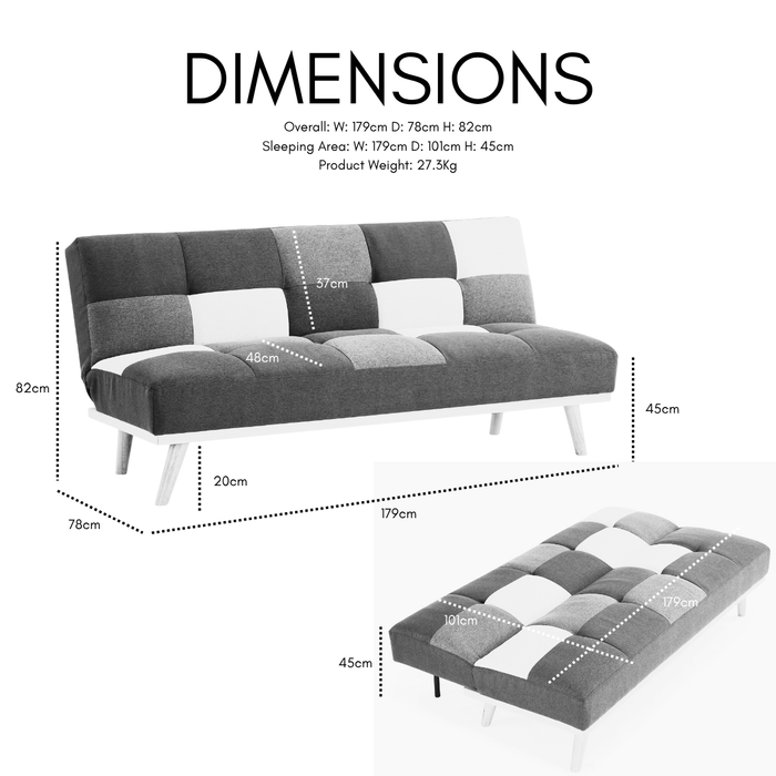 Introducing PADDOCK, a 3-seater fabric sofa bed, available in a striking patchwork design.