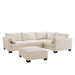 Elevate your living space with the timeless charm and everyday comfort of this modern linen fabric corner sofa. Upholstered in a soft textured linen fabric, this neutral-toned sofa blends effortlessly with any decor - from contemporary to classic. Seating up to 5 people with the shorter corner section on the right-hand side (when facing the sofa), it also comes with a matching footstool.