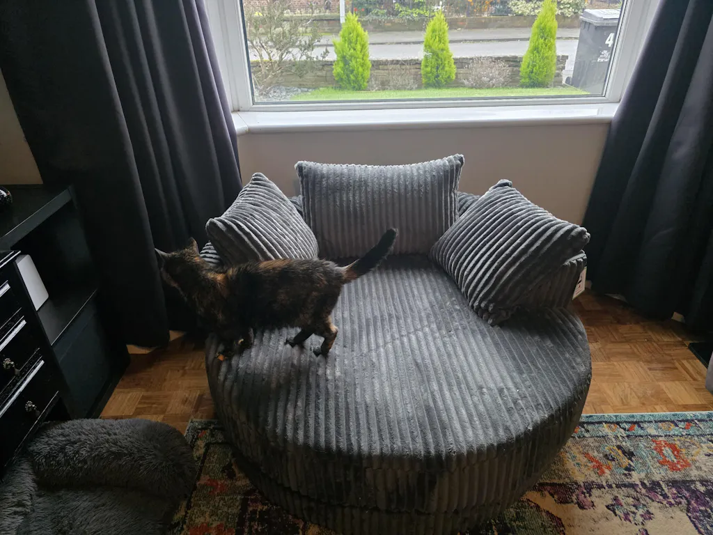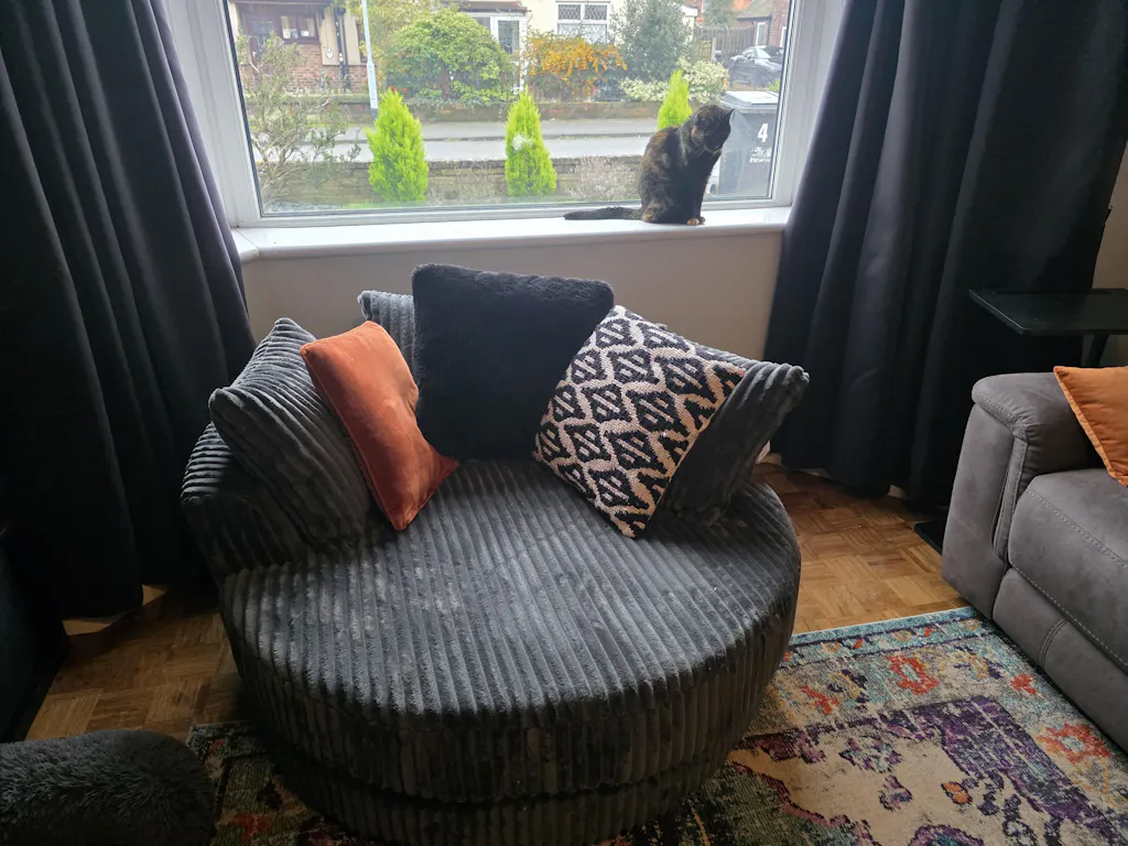 Fancy a cuddle? Our Skyler swivel loveseat is here to give you just that! Experience the ultimate in comfort with our jumbo cord cuddler loveseat. Skyler is an extra-large armchair perfect for 1 person but also generously cosy for 2 people. Relax and unwind, reading your favourite book or binge-watching the latest boxset, the Skyler will very quickly become your favourite spot. Skyler will surely be a statement piece in your living space. With 3 matching throw pillows and 360° swivel, your guests will be fighting over who gets the first shot.