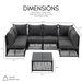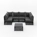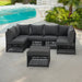 Create a stylish and functional outdoor living space with the Tobago 6-seat modular rope garden sofa set. Designed to enhance modern exteriors, this premium outdoor furniture set includes modular sofa sections and a matching coffee table, all built with a sturdy steel frame and wrapped in durable polyester rope. The sleek, charcoal grey finish and thick, weather-resistant cushions offer a contemporary and comfortable setting for any garden, patio, or terrace.