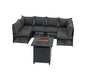 Tobago 6 Seater Modular Rope Garden Sofa Set with Cushions and Firepit Table – Steel Frame & Dark Grey Cushions