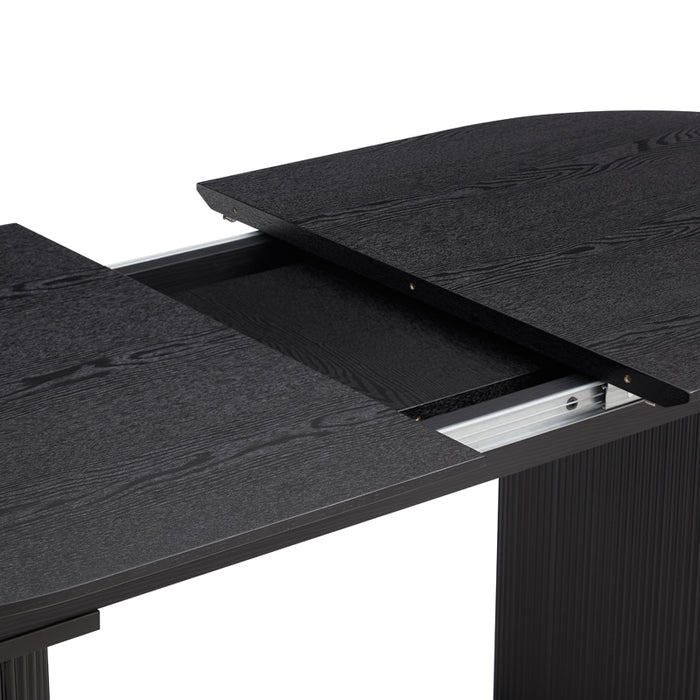 Minimalism is the newest home trend, and our Tokyo Japandi table fits right in! With our Tokyo's table warmth, natural elements, minimalistic aesthetic, and crisp lines, your dining space will be sure to impress any guests to your home. Tokyo offers a wooden veneered table top with a linear grooved base, creating a dining space of dreams. Available in natural or black, choose the colour that will complement your home space.